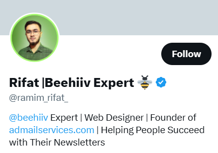 Rifat really knows how to make Beehiiv work well for building and growing a newsletter. He has a great understanding of how to set things up, keep them running smoothly, and help the business grow over time. It’s been a pleasure working with him.